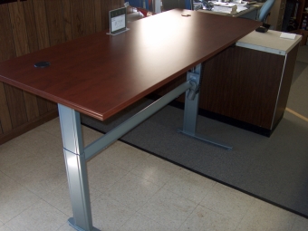 Fisher James electric height adjustable workstation at very reasonable price Adjusts in height from 27" to 47". Supports up to 176 lbs. Extra safety switch prevents accidental raising or lowering of workstation. Availble with a custom top, (AS SHOWN) or use your own.